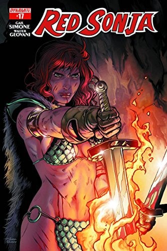 [easyazon_link identifier=”B012OJMPSE” locale=”US” tag=”bounintocomi-20″]Red Sonja #17[/easyazon_link] is a fun romp. It also looks at some deeper subjects, such as education, but only really touches them on the surface. Simone’s writing is for the most part enjoyable, although there are some missteps with the old nun. Walter Geovani’s artwork is excellent. He mixes up different types of panels and provides a number of unique camera angles to depict different sequences.