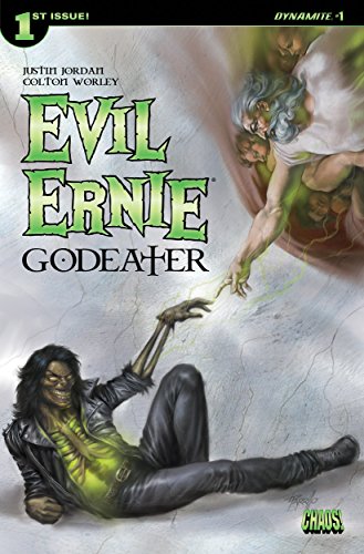[easyazon_link identifier=”B01FIU27YS” locale=”US” tag=”bounintocomi-20″]Evil Ernie: GODEATER #1[/easyazon_link] doesn’t care if the reader is up to speed on the titular character’s backstory from twenty years ago, nor does it rest on the laurels of the previous reboot titles from Dynamite Studios from this decade. The comic tosses the reader right into the deep end and dares them to swim. There is no lifeline. There is no “previously on.” You’re given all the information you need right up front: crazy evil undead guy and his talking button are here to raise hell, and some sort of otherworldly force doesn’t want them to. That’s it.
