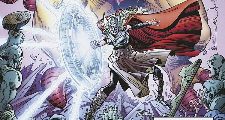 Marvel Comics and the creative team of writer Jason Aaron, artist Russel Dauterman and colorist Matthew Wilson didn’t waste any time whatsoever bringing Jane Foster back from the dead. In the last issue Foster sacrificed herself and the powers of Thor to defeat the Mangog. She used chains “forged by the dwarves of Nidavellir to bind the monster Fenris until the day of Ragnarok.” She then attached Mjolnir to the chains and sent the beast flying into the sun, seemingly destroying Mangog and Mjolnir in the process.