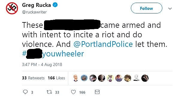 Reactions to Greg Rucka’s tweets have been mostly negative with a few positive. Many called Rucka out on his labeling of Patriot Prayer members as “Nazis.”