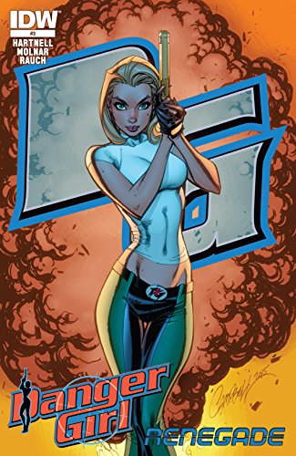 Writer Andy Hartnell continues the pattern of flashing back to a past experience in the first half of the book and then jumping ahead to the present in the second half of [easyazon_link identifier=”B017S79F12″ locale=”US” tag=”bounintocomi-20″]Danger Girl: Renegade #3[/easyazon_link]. The split timelines allow Hartnell to explore two dynamic parts of Abbey’s character. In the past, we get to see her in all of her Indiana Jones glory, hunting for treasure, solving ancient puzzles, and dealing with double crossers. In the present, she takes on more of a super spy role, using advanced technology, taking on top secret missions, and going on epic car chases.