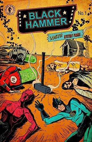 Jeff Lemire may be our greatest living graphic novelist. I know that’s a pretty bold statement, but if you’ve read Sweet Tooth, Essex County, or The Underwater Welder, you know it’s one that’s difficult to contest. And if you haven’t read his work, shame on you. The man understands how to dig at the very soul of his characters and brings out the best in them in a way not many writers can. He writes thoughtful stories about being human, even when his characters are robots or aliens or monsters. That’s why anytime Lemire creates a new intellectual property, whether he’s drawing it or not, it calls for celebration. So with that being said, break out the champagne and cheese platter for Dark Horse’s [easyazon_link identifier=”B01HFC1JX2″ locale=”US” tag=”bounintocomi-20″]Black Hammer #1[/easyazon_link].