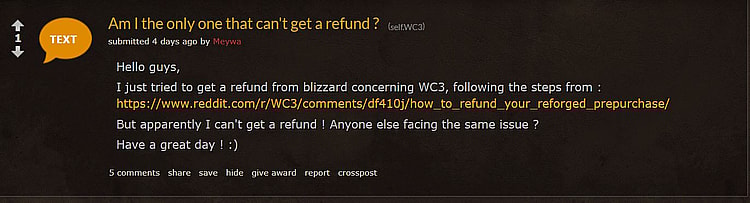 A Reddit user by the name of chaosgeneral in Australia posted in the r/warcraft3 subreddit about how Blizzard denied their refund request in violation of Australian consumer law.