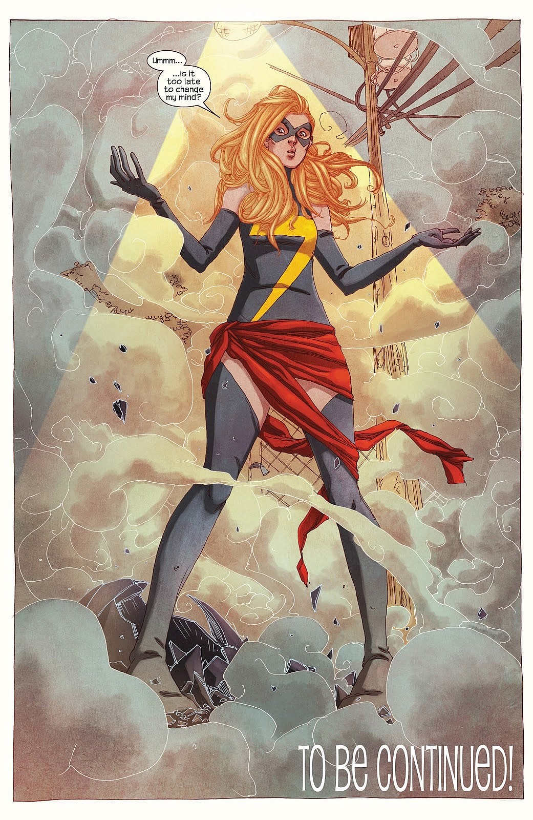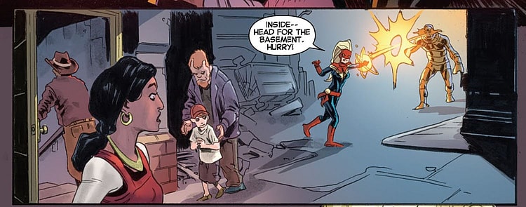 In the second issue, they would reveal Khan’s new Ms. Marvel design on the cover, although she would still save people shapeshifted as Carole Danvers.