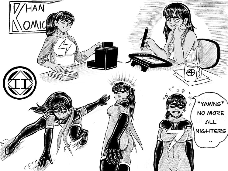 An aged up Kamala Khan, where she owns her own comic shop and is trying to make it as a comic creator while also being a superhero. Makes for a more interesting story, wouldn’t you say?#MARVEL #marvelcomics #comicartist pic.twitter.com/Mx99PzzUUq