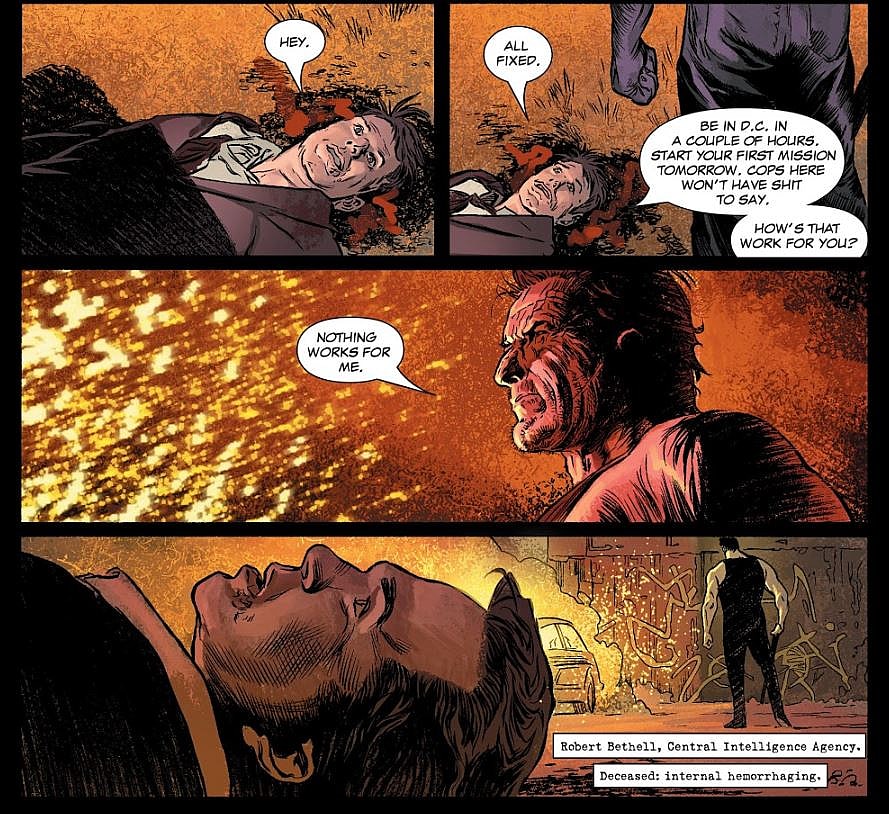 In The Punisher Max #5, Castle discovers that CIA agent Robert Bethell is involved in the heroin trade. After a massive firefight, The Punisher walks away. Robert Bethell dies from internal hemorraghing.