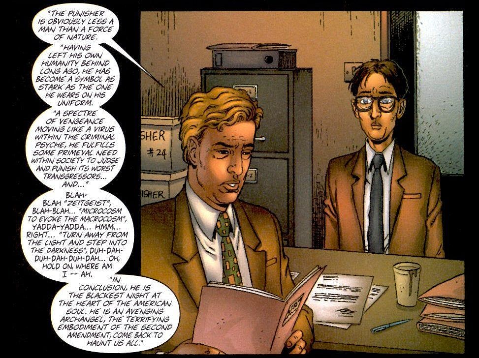 In that story The Punisher has returned to New York City on the hunt for Baron Zemo. After executing a man who has been violently attacking women and robbing them at knife point as well as a top Hydra agent, Castle is stopped by two police officers.