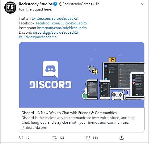 Rocksteady would follow that tweet up encouraging their followers to “Join the Squad.” They then shared multiple links to their social media platforms for the upcoming Suicide Squad game on Facebook, Twitter, Instagram, and Discord.