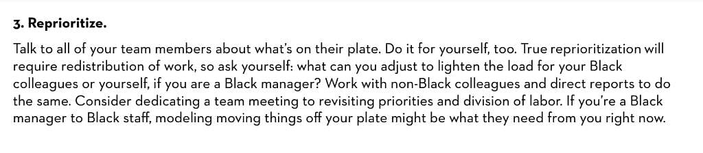 In the pages of this guide, it calls for managers to redistribute work from black colleagues to non-black employees.