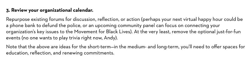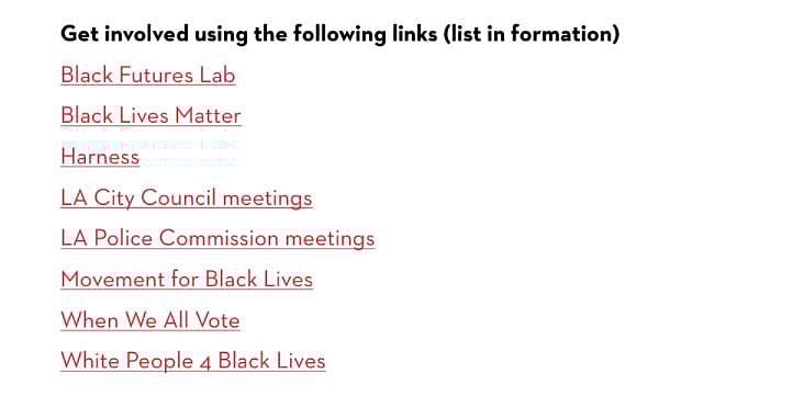 The first slide of the post read, “Enough is enough. Enough police brutality. Enough outsized privilege. Enough white comfort. Enough lopsided access. Enough exhausting our friends and colleagues. Enough being incurious. Enough being unintentional. Enough injustice. Enough death. ENOUGH.”