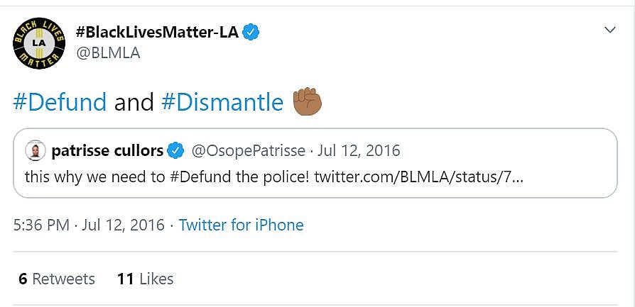Black Lives Matter also advocates for not only the defunind of the police, but the dismantling of the police.