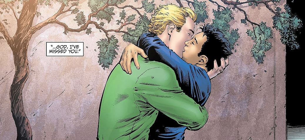 In the actual comic, Alan Scott is shown kissing Sam Zhao.
