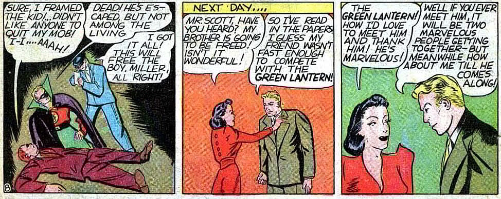 Scott would continue to share his affections with Miller in the first issue of Green Lantern back in 1941.