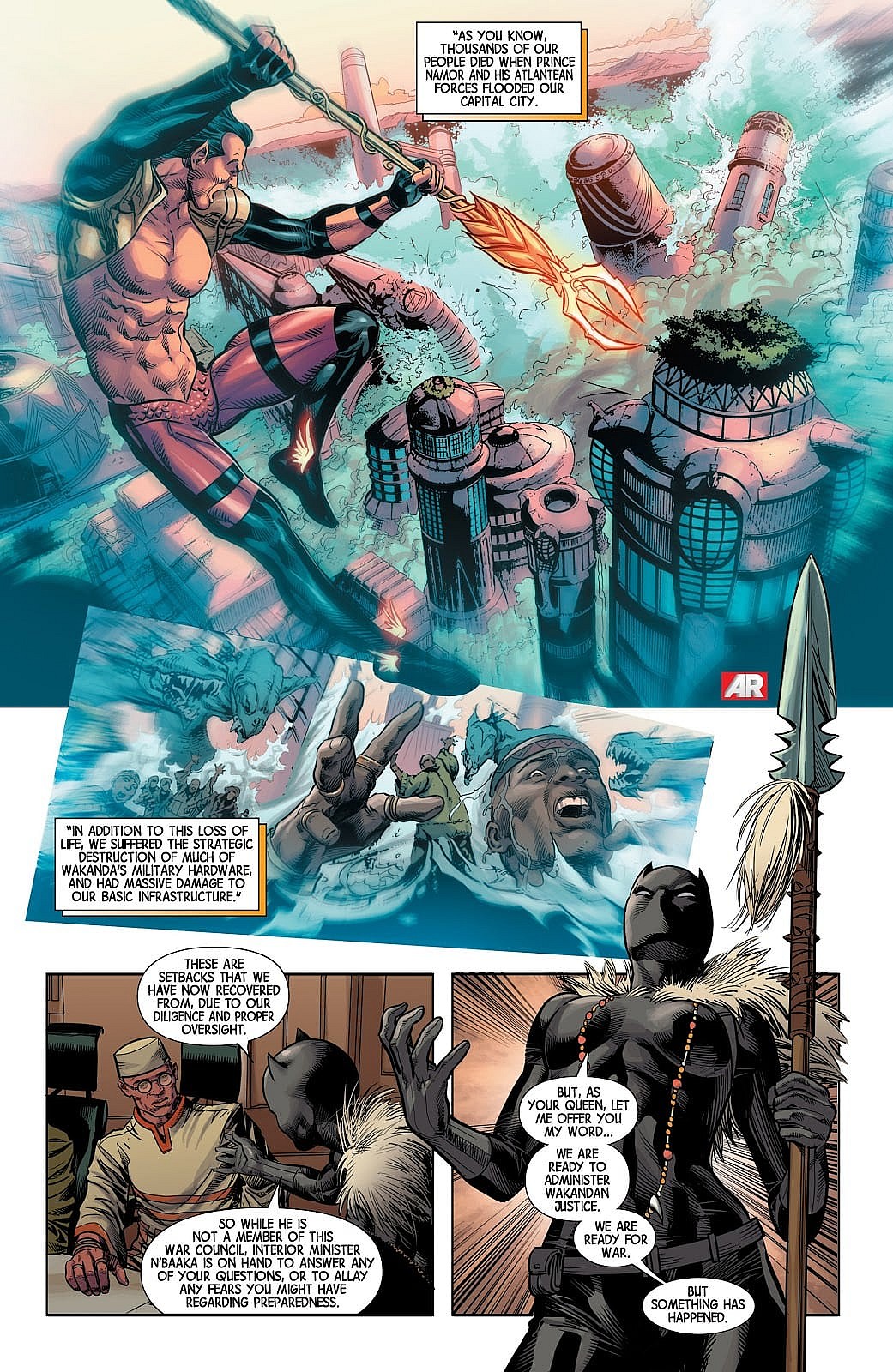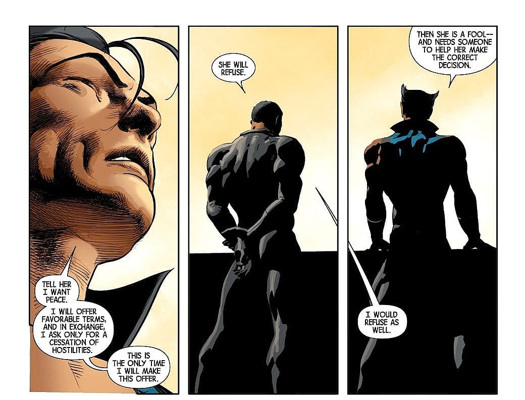In New Avengers #7, Namor attempts to negotiate a peace between Wakanda and Atlantis with T’Challa. However, Black Panther informs him that Shuri will reject his proposition.