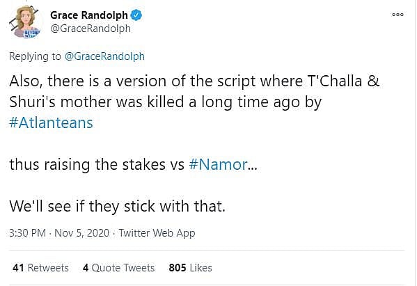 Randolph wrote on Twitter, “Also there is a version of the script where T’Challa & Shuri’s mother was killed a long time ago by Atlanteans. Thus raising the stakes vs Namor.”