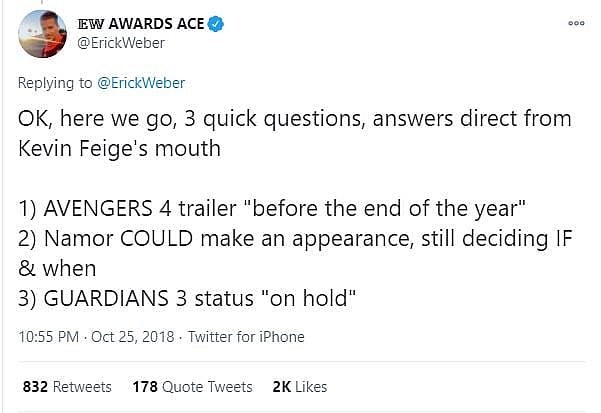 Related: Kevin Feige Hints at Avengers 4 Trailer Release – Gives Update on Namor!