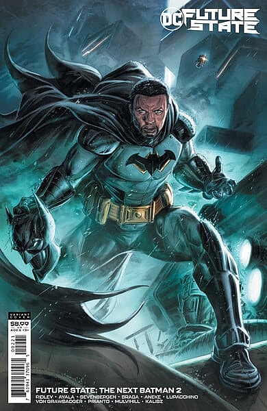 The black Batman is Tim Fox, an estranged son of Lucius Fox and the brother of former Batwing Luke Fox. The character was revealed in a variant cover by Doug Braithwaite and Diego Rodriguez for DC’s Future State: The Next Batman #2.