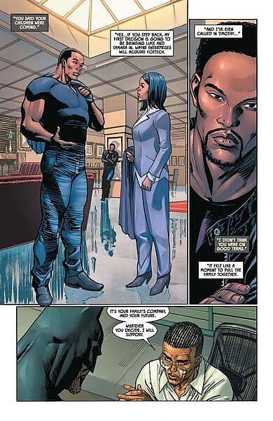 The character would next appear in James Tynion IV’s Batman #101 with Lucius Fox revealing his plans to bring his son Timothy into the fold telling Batman, “And I’ve even called in Timothy… It felt like a moment to pull the family together.”