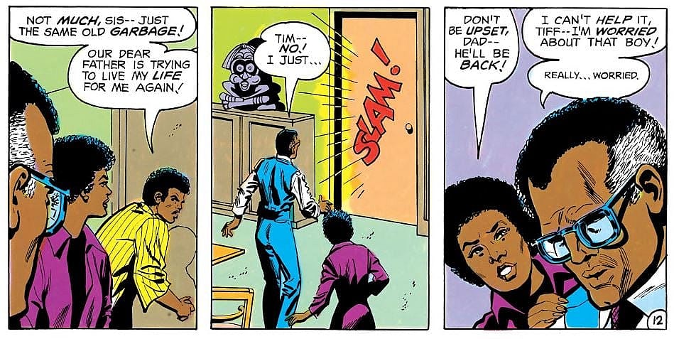 In that issue Tim Fox walks out on his father after the two get into an argument over the type of people Tim is hanging out with while he attends college.