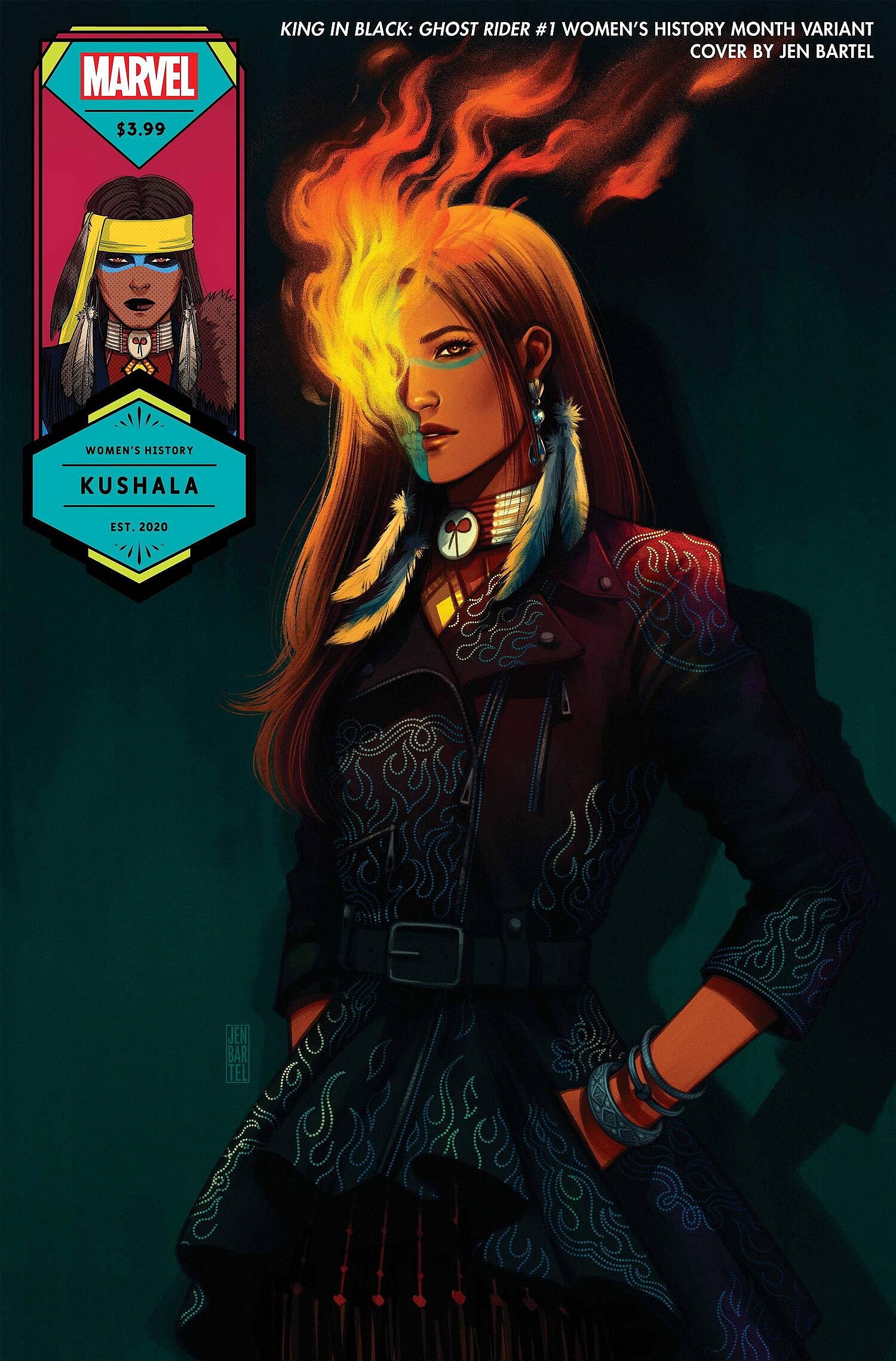 All of the variant covers are done by artist Jen Bartel and will grace the covers of Black Cat, Black Panther, Spider-Woman, King in Black: Ghost Rider, Avengers, Iron Man, Silk, and X-Men.