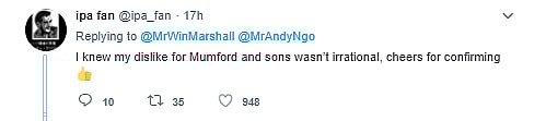 One Twitter activist wrote, “I knew my dislike for Mumford and sons wasn’t irrational, cheers for confirming.”