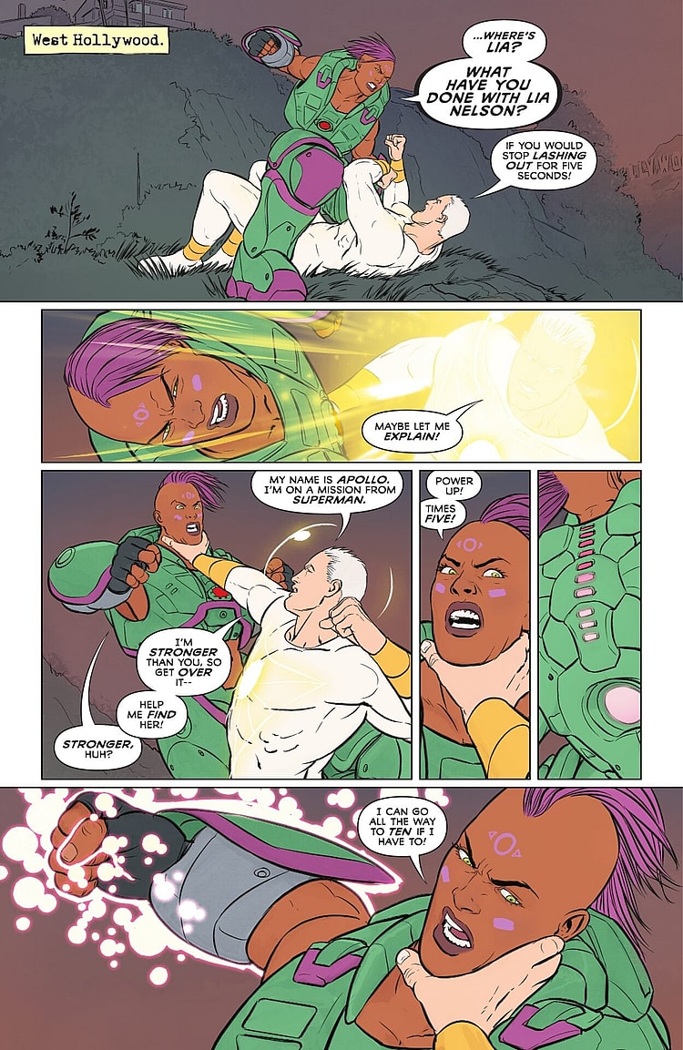 Before he’s even had a chance to oblige Lightray’s condition, the Man of Steel is soon met with an overtly-defensive and insecure rundown of their relationship from OMAC, all of which concludes in the vocal declaration of their own personal pronouns.
