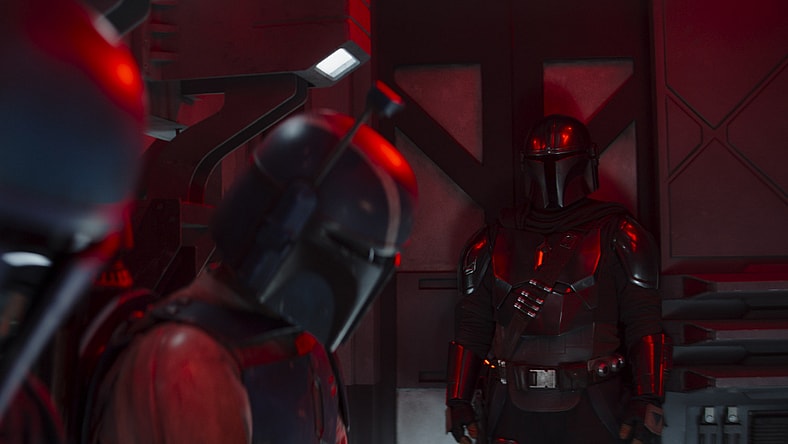 As the episode comes to a close, it’s revealed the first ambush wasn’t the primary one, Gideon traps the remaining Mandalorians, who believe they have the Imperials on the ropes, between two blast doors. Din Djarin and two other Mandalorians manage to remain outside the trap, Djarin is disarmed and captured. While the other Mandalorian is killed. Bo-Katan, who has the Darksaber, just stands and watches. She doesn’t try and cut a hole through the blast door or anything.