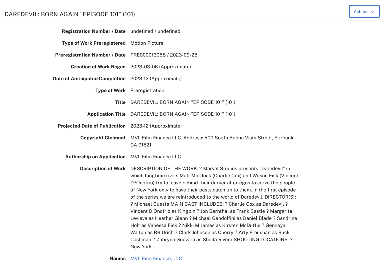 Further confirmation as to Woll and Henson’s dropping from Daredevil’s supporting cast was further given in October 2023, courtesy of an official series production filing made with the U.S. Copyright Office regarding its premiere episode.