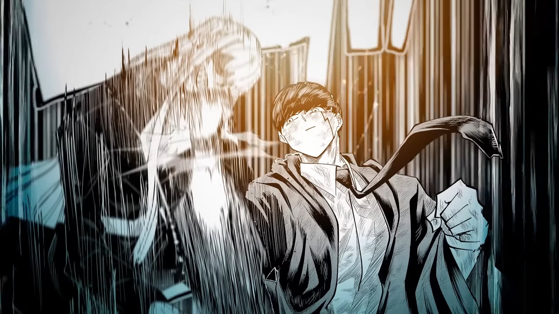 To commemorate the ‘One Punch Man x Mob Psycho 100 x Harry Potter’ hybrid series new anime, the project’s production team released a key visual depicting Mash clenching his fist and cracking a wand in half.