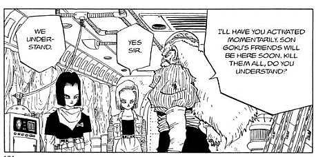 In her first appearance, she and her brother are activated by the villainous Dr. Gero who tasks them with killing Son Goku.