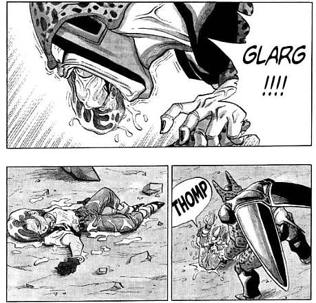 Cell eventually achieves his goal and does indeed absorb Androids 17 and 18. However, she is regurgitated when Gohan attains Super Saiyan 2 and overpowers Cell.