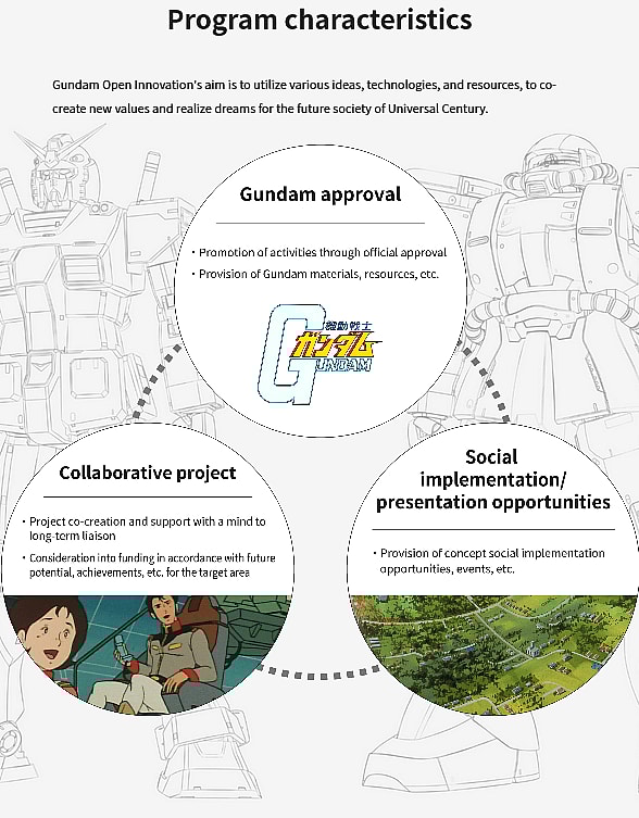 According to the official GUNDAM Open Innovation website, Bandai Namco is particularly “looking broadly for innovative ideas and technologies, related to sustainable themes/domains that could help future society deal with the same problems as the Gundam world, such as over-population, environmental destruction, and space colonization.”