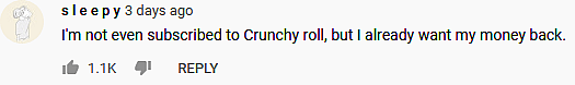 “I’m not even subscribed to Crunchy roll, but I already want my money back,” said s l e e p y, sarcastically.