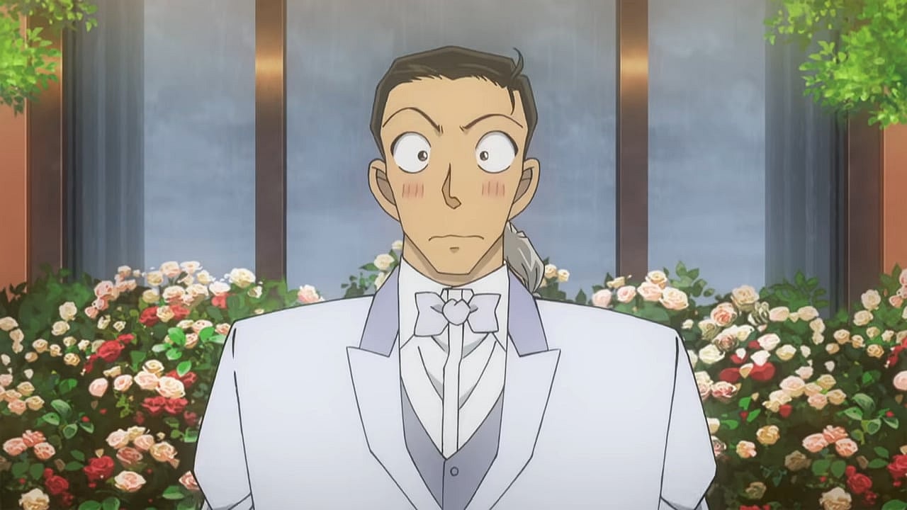 “While Conan and the other invited guests are watching, an assailant suddenly bursts in, and Detective Wataru Takagi, who was trying to protect Sato, is injured,” it continues.