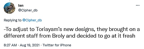 Thus, the producer explained, “to adjust to Toriayam’s new designs, they brought on a different staff from Broly and decided to go at it fresh,” resulting in what he believes to be his best team of any work yet.