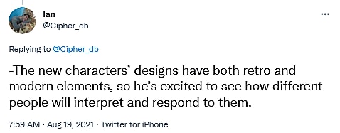 “Real sense of cohesion to the story and variety to the new characters,” translated @cipher_db. “Says this was their best start to a project.”