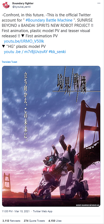 Bandai Spirits And Sunrise Beyond released the first trailer for their upcoming new mech anime series, Kyoukai Senki, which translates to Boundary Battle Machine or Boundary Fighter.