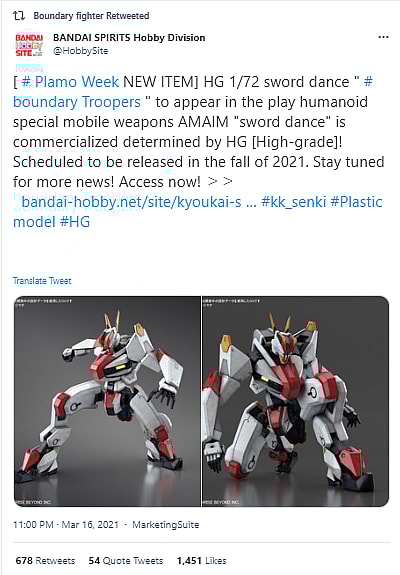 Crunchyroll’s Komatsu also reveals that Ken Okuyama Design, led by Kiyoyuki Okuyama is the main mechanical designer for the AMAIM plastic model titled HG 1/72 Knebu that will be released by Bandai Spirits in the fall of 2021.