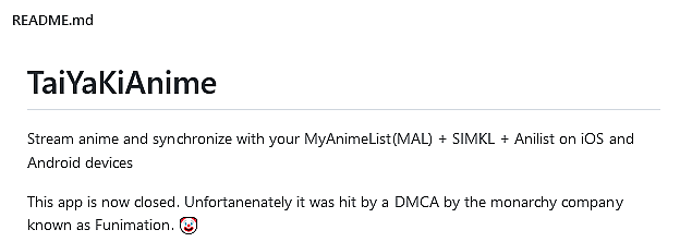 As first outlined by Torrentfreak, word of Funimation’s anti-piracy actions first surfaced on September 6th, when one of the first outlets to get hit with a DMCA takedown, dedicated iOS and Android streaming app TaiYakiAnime, informed its users that “this app is now closed” because, “Unfortunately it was hit by a DMCA by the monarchy company known as Funimation.”
