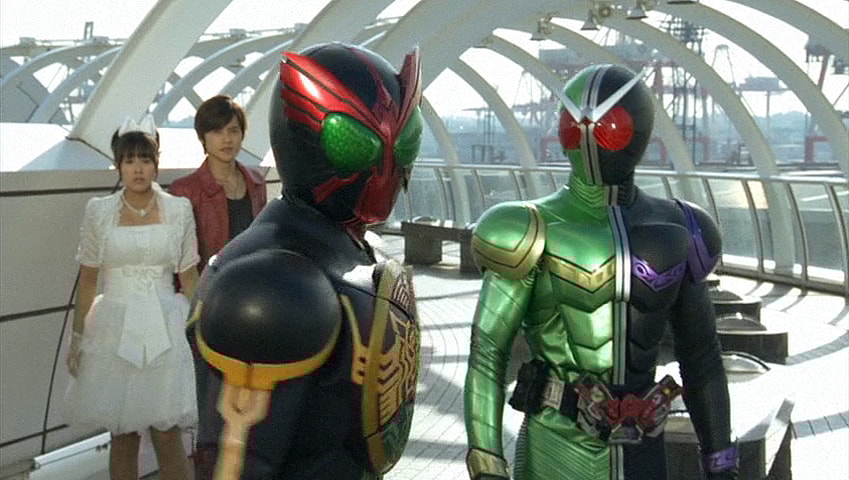 The two halves of Kamen Rider Double themselves, Shotaro Hidari (CV: Yoshimasa Hosoya – Junk Dog/Joe, Megalobox):