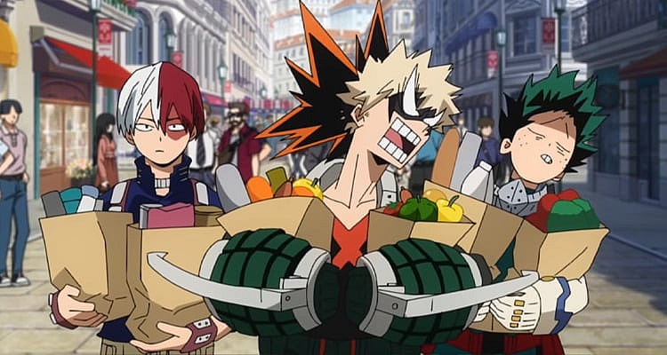 It states, “When a sinister organization threatens to wipe out all superhuman powers, the fate of the world is on the line. With two hours until the collapse of civilization, Deku, Bakugo, and Todoroki manage to work as a team, but there’s still one problem. Deku’s on the run for murder.”
