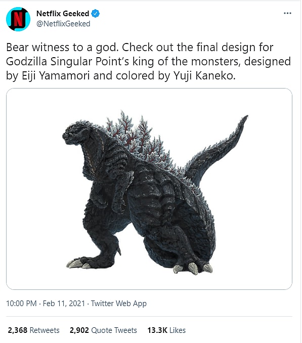 Netflix Geeked previously shared a final design for Godzilla Singular Point’s Godzilla back in February.