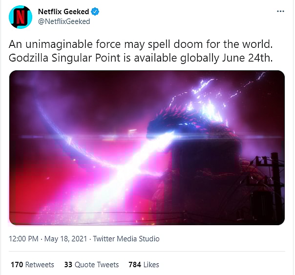 They tweeted, “An unimaginable force may spell doom for the world. Godzilla Singular Point is available globally June 24th.”