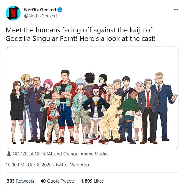 Netflix announced the release date for the upcoming Godzilla Singular Point anime series.