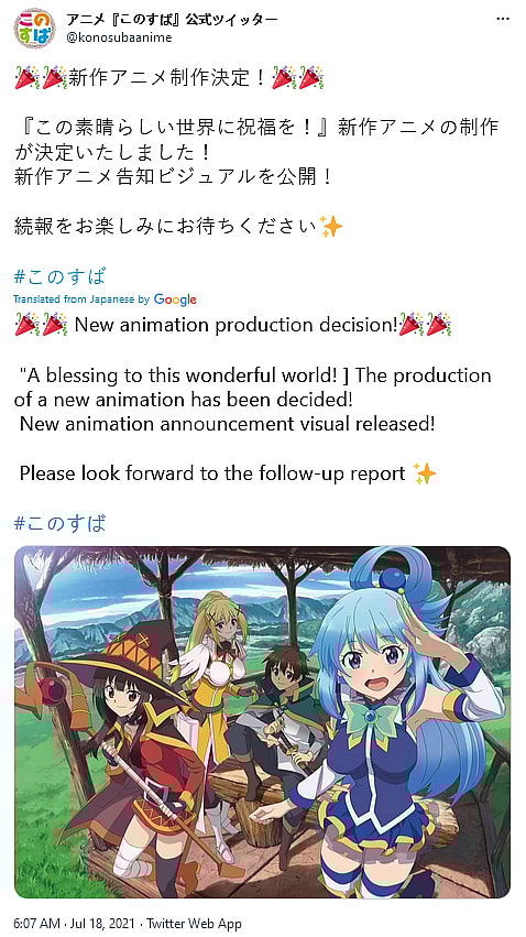 However, as details outside of its existence are scarce, the KonoSuba production team concluded their tweet asking fans to “Please look forward to the follow-up report” for more information regarding the project.