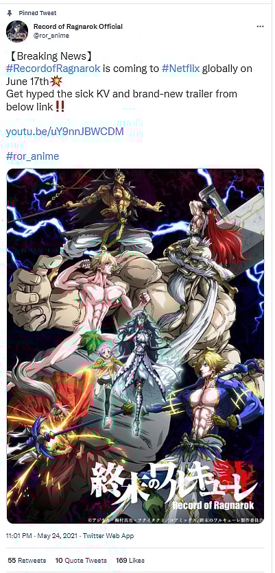 The official Twitter account wrote, “Record of Ragnarok is coming to Netflix globally on June 17th.”