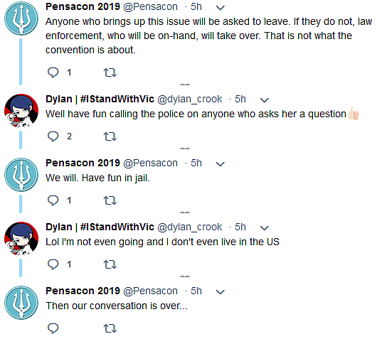 Pensacon then clarified that anyone who brought up the issue in any form would not only be removed from the convention, but that the situation would be escalated to local law enforcement authorities: