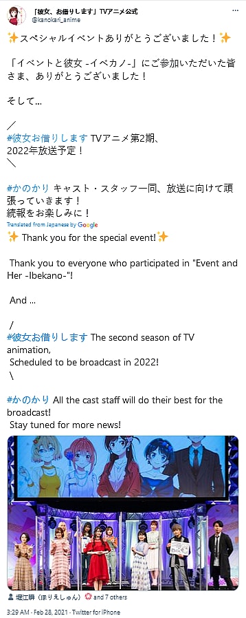 The tentative release window was first revealed on February 27th during a Rent-A-Girlfriend special television event wherein several members of the cast reprised their roles from the anime series to put on a special live performance.