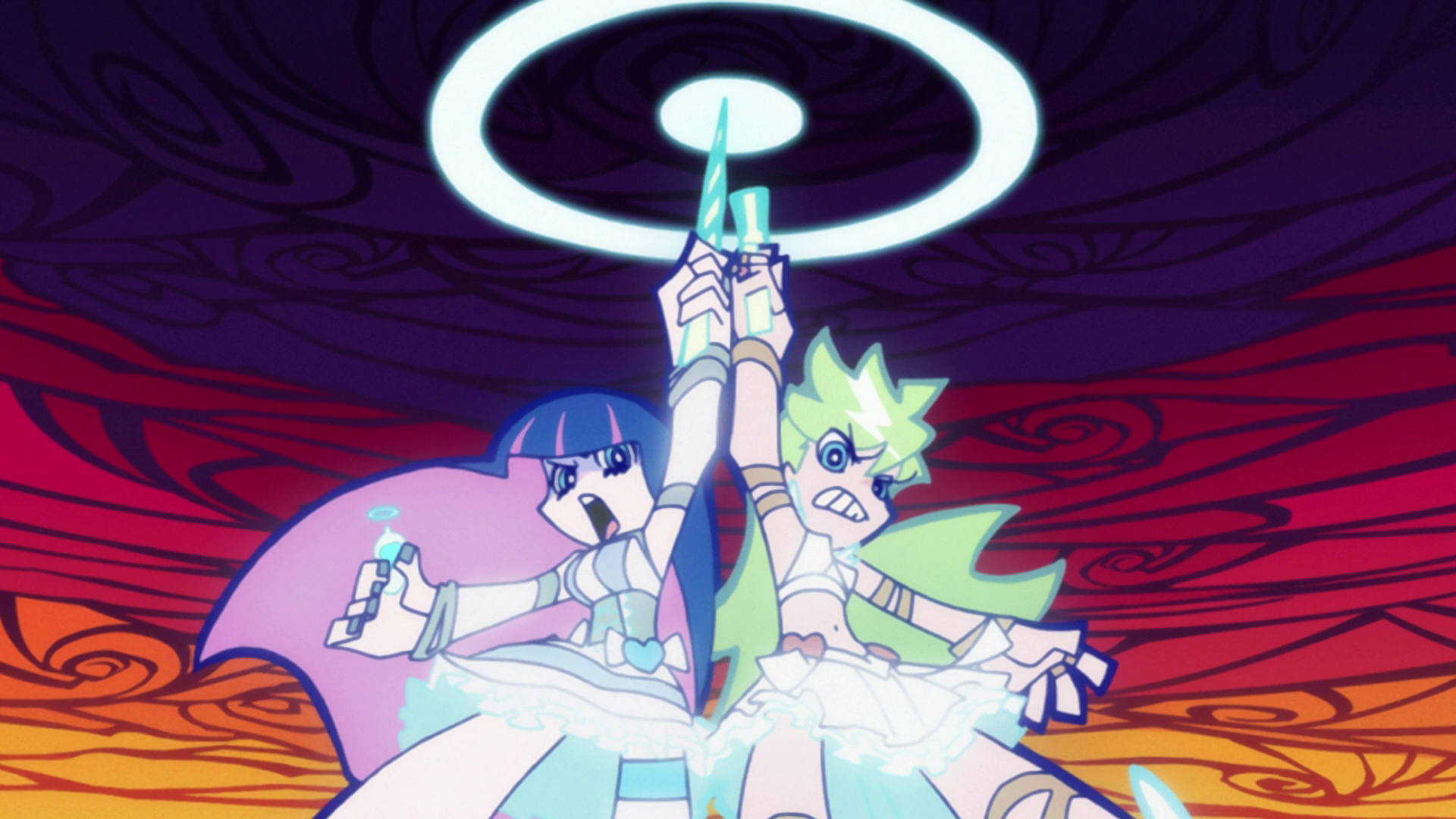 Produced by studio Trigger predecessor Gainax, Panty & Stocking with Garterbelt is a 2010 action-packed comedy anime that revolves around the misadventures of the titular anarchy sisters Panty and Stocking, a pair of angels whose constant bad behavior eventually gets them booted out of Heaven and banished to the ghost-plagued Daten City.