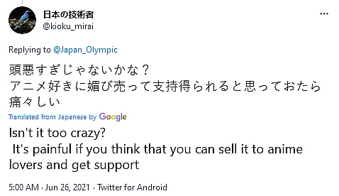 “Isn’t it too crazy?,” asked @kioku_mirai. “It’s painful if you think that you can sell it to anime lovers and get support.”
